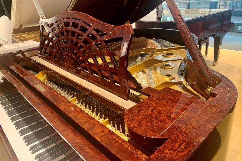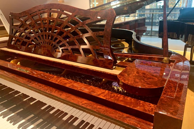 Dieser Flügel hat bereits auf den Bühnen verschiedener Messen geglänzt und seinen Charme in Klang und Optik versprüht.