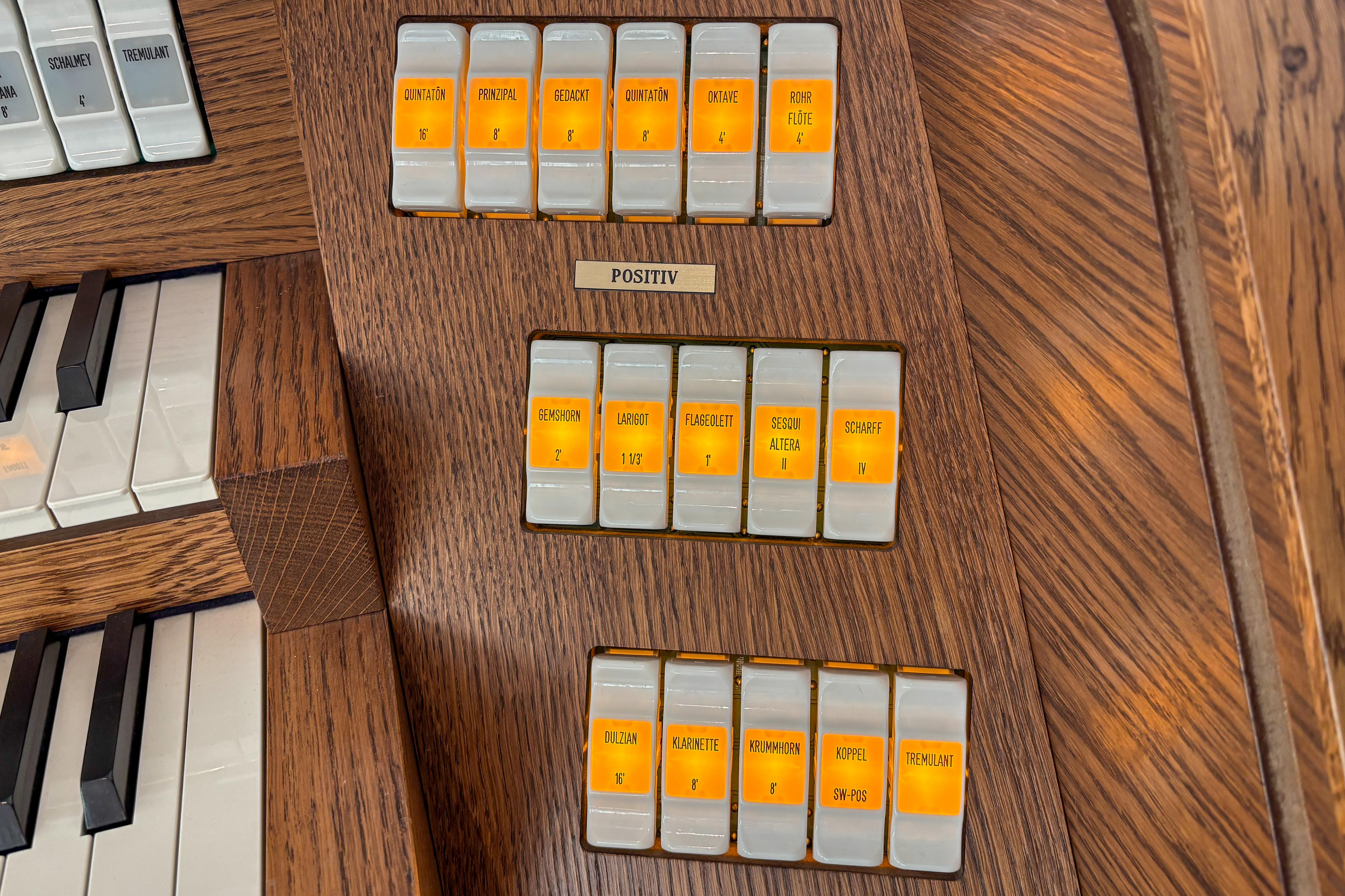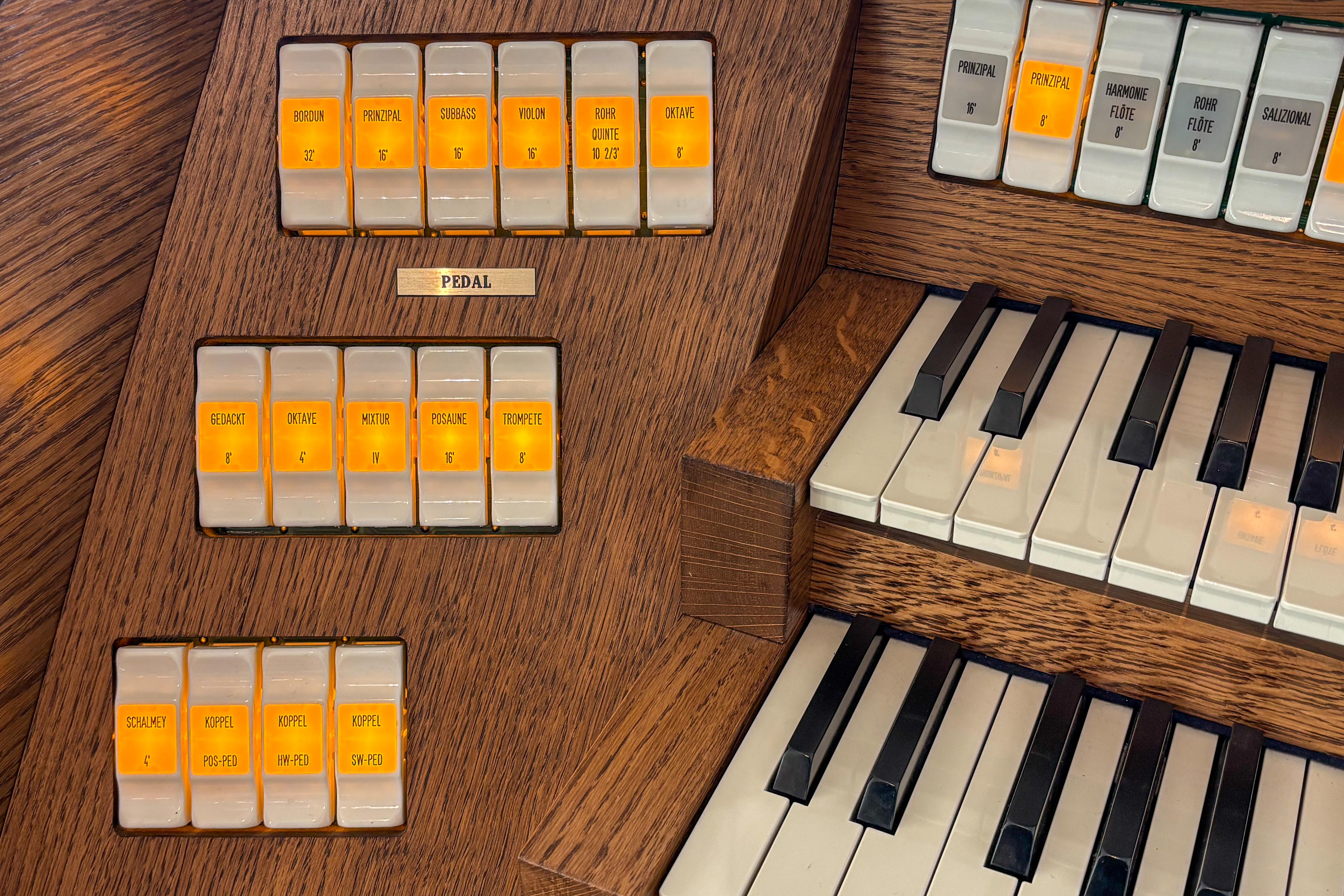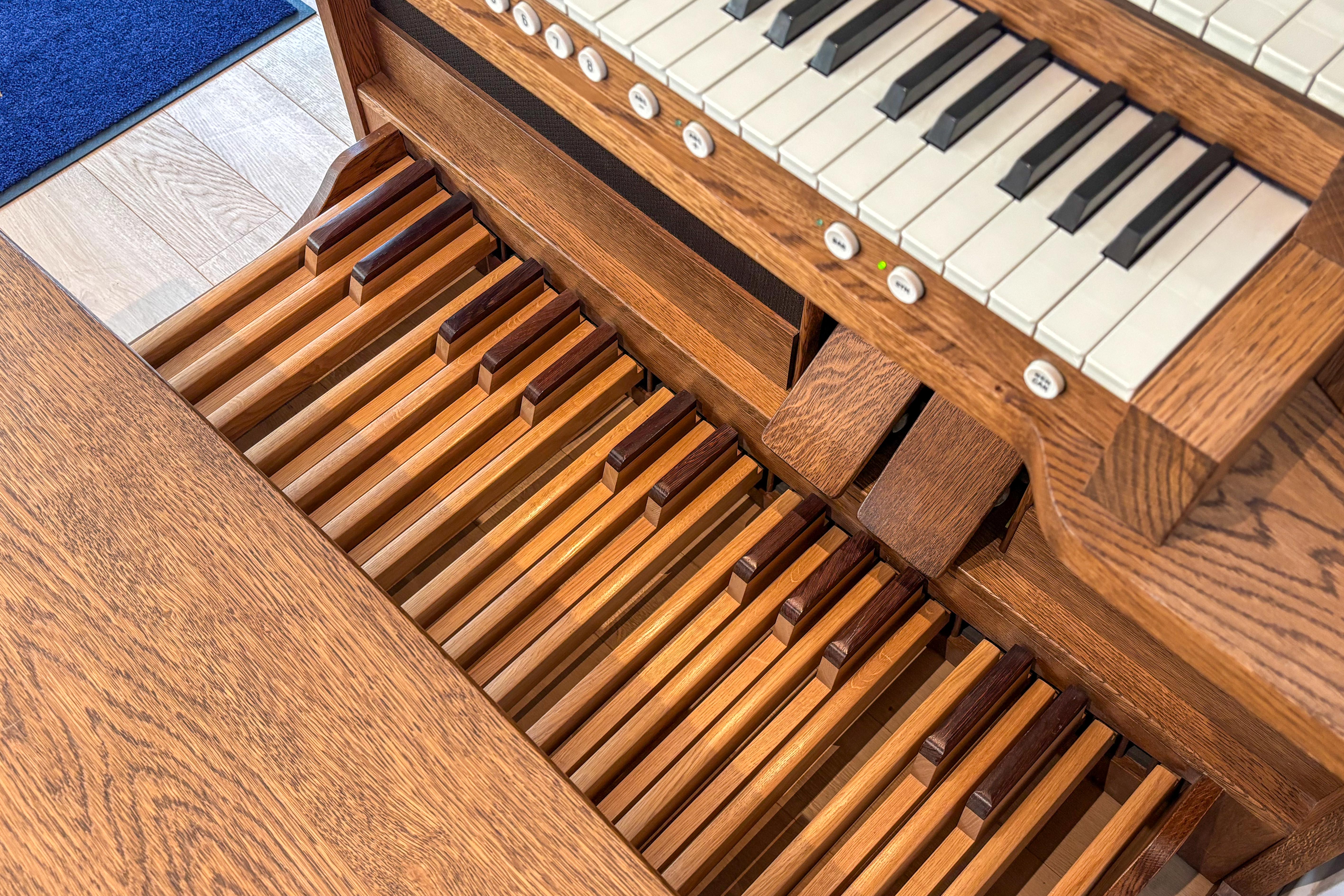 Dank der präzisen Spieltraktur, der vielseitigen Registrierungsmöglichkeiten und der sorgfältigen Intonierung bietet dieses Instrument eine außergewöhnliche musikalische Ausdruckskraft. Mit zwei Manualen, einem vollwertigen Pedalwerk und einer intuitiven Bedienung eignet sich die Orgel sowohl für den liturgischen Einsatz als auch für konzertante Darbietungen.