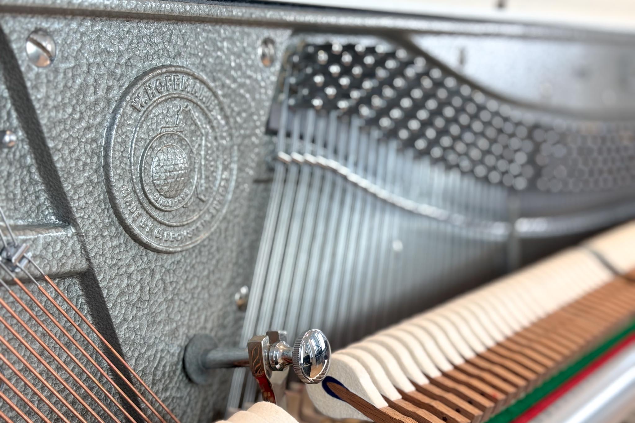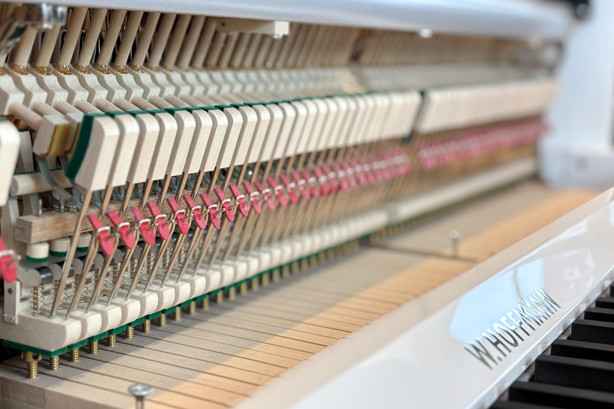 Die spezielle Resonanzbodengeometrie und die professionelle Hammerkopfdimensionierung des W.Hoffmann P 120 unterstützen die optimale Klangabstrahlung und bieten dem geübten Spieler ein umfassendes Spielvergnügen. Die hochwertigen Hammerköpfe stellt C. Bechstein Germany in seiner Manufaktur selbst her. Diese Hammerkopffertigung ist weltweit einzigartig, wie die Fachpresse beschreibt.
