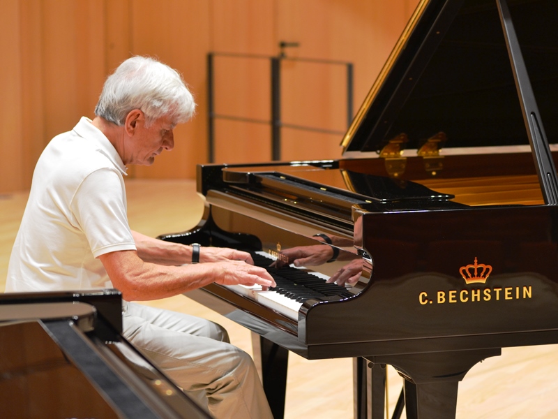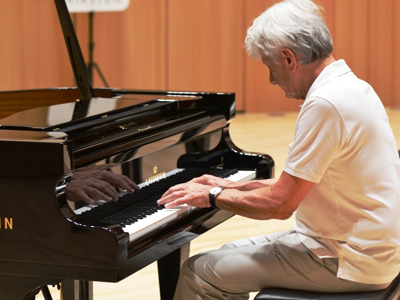 Für die Auswahl des Konzertflügels für das C. Bechstein Centrum Dresden im DRESDNER PIANO SALON konnte Bert Kirsten Prof. Peter Rösel, Pianist und Professor emeritus an der Dresdner Musikhochschule sowie Ordentliches Mitglied der Sächsischen Akademie der Künste, gewinnen. Mit Bedacht und hoher Konzentration spielt Prof. Rösel die drei Instrumente mit unterschiedlichsten Werken an und lotet von einem feinsten Pianissimo bis zum stärksten Fortissimo die weite Dynamik der Konzertinstrumente aus. Er arbeitet die feinen Unterschiede in den Bereichen Spielart, Dynamik und Klangfarben zwischen den drei Flügeln heraus und schafft so eine Basis für seine Auswahl. Da alle drei Flügel ausgezeichnete Spiel- und Klangeigenschaften besitzen, ist es für Prof. Rösel nicht einfach, eine Wahl zu treffen. In einem ersten Schritt schließt er ein Instrument aus und entscheidet sich dann nach nochmaligem mehrfachen Anspielen für den Flügel, der zukünftig im C. Bechstein Centrum Dresden im DRESDNER PIANO SALON mit seiner klanglichen Strahlkraft die Gäste begeistern wird.