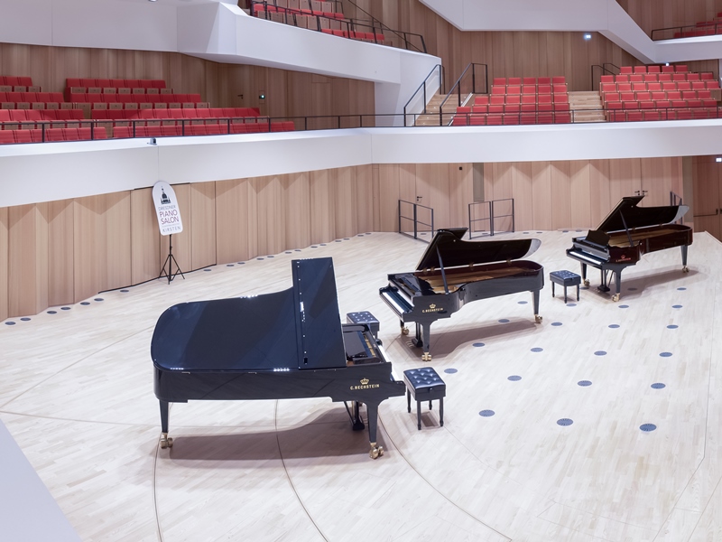 Es ist ein wahrscheinlich einmalige Ereignis im neuen Konzertsaal der Dresdner Philharmonie im Kulturpalast: Gleich drei C. Bechstein Konzertflügel D 282, 282 cm lang und jeder 540 kg schwer, stehen auf der Bühne. Die C. Bechstein Pianofortefabrik AG, einer der weltweit renommiertesten Hersteller von Klavieren und Flügeln, dessen Instrumente in vielen großen Konzertsälen wie der Berliner Philharmonie oder dem Konzerthaus Berlin stehen und auf allen Kontinenten zu finden sind, hat extra für diese Auswahl die drei „Schwergewichte“ von der Manufaktur in Seifhennersdorf nach Dresden in den Kulturpalast transportiert.