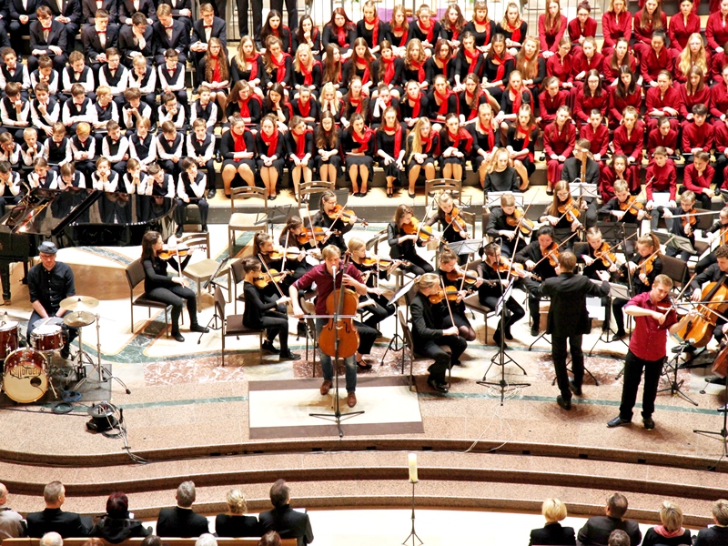 Selbstverständlich muss die Zahl 20, eine solch schöne Konzerttradition für den guten Zweck, musikalisch gebührend gewürdigt werden. Der Dresdner Knabenchor, der Philharmonische Kinderchor, der Mädchenchor „Cantemus“ Hoyerswerda, das Junge Kammerorchester Dresden und die glasklaren Stimmen zweier junger Sopranistinnen erwärmten am kühlen heutigen Freitagabend das Publikum mit einem stimmig arrangierten Programm überwiegend klassischer Stücke. Welche Steigerung gegen Ende des Abends wäre sinnreicher gewesen als der Gastauftritt einer Rockband, die auf klassischen Instrumenten spielt. „Stilbruch“ (Leipzig/Dresden), bestehend aus einem Schlagzeuger, einem Cellisten und einem Violinisten, basste, strich, quietschte und kratzte rockig-raue Töne bis in den letzten Winkel des Kirchenschiffs, begeisterte mit großem Klangvolumen, das vom Orchester noch unterstützt wurde, und brachte die Zuhörer mit äußerst gefühlvollen Texten zum Staunen. Strahlende Menschen, die sich gegenseitig versicherten: „Es war mal wieder toll!“ (oder auf sächsisch „‘s woar wieder gudd, nor?“), verließen zwei Stunden später die gut gefüllte Kirche in dem Wissen, nicht nur ein wunderbares Konzert hervorragender Nachwuchskünstler erlebt, sondern mit dem Kartenkauf ein wichtiges Anliegen unterstützt zu haben.