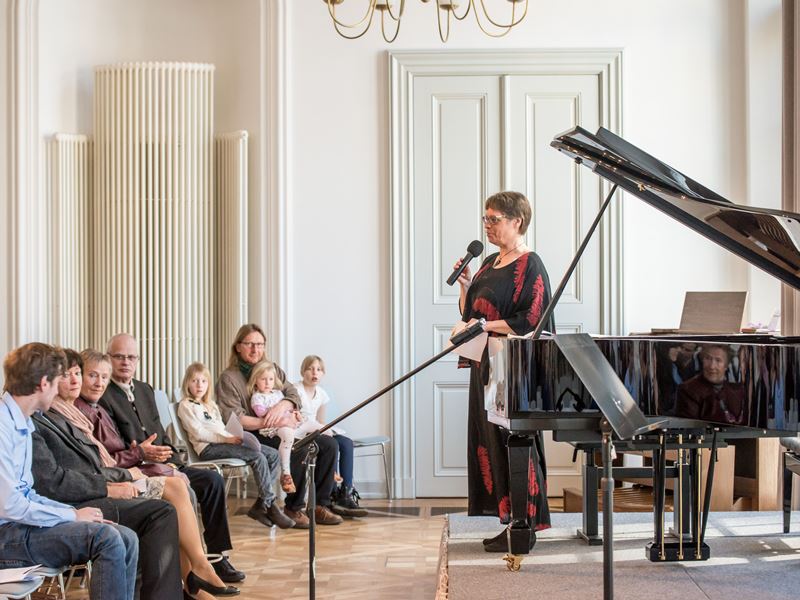 Das musikalische Programm, mit dem der Verein geehrt wurde und dessen künstlerische Leitung wie gewohnt bei Prof. Sonja Gimaletdinow lag, war passend zum Thema auf Kinder zugeschnitten. Es erklangen Werke wie „Kinderstube“ von Modest Mussorgski, „Kinderszenen“ von Robert Schumann, „Karneval der Tiere“ von Camille Saint Säens und weiteren schönen Beiträge. Prof. Sonja Gimaletdinow ist es gelungen, zwei Kinder der Spezialschule für Musik Dresden und der Musikschule Freital für das Programm zu gewinnen. Weitere Akteure waren Studenten und Lehrkräfte der Hochschule für Musik Carl Maria von Weber Dresden.