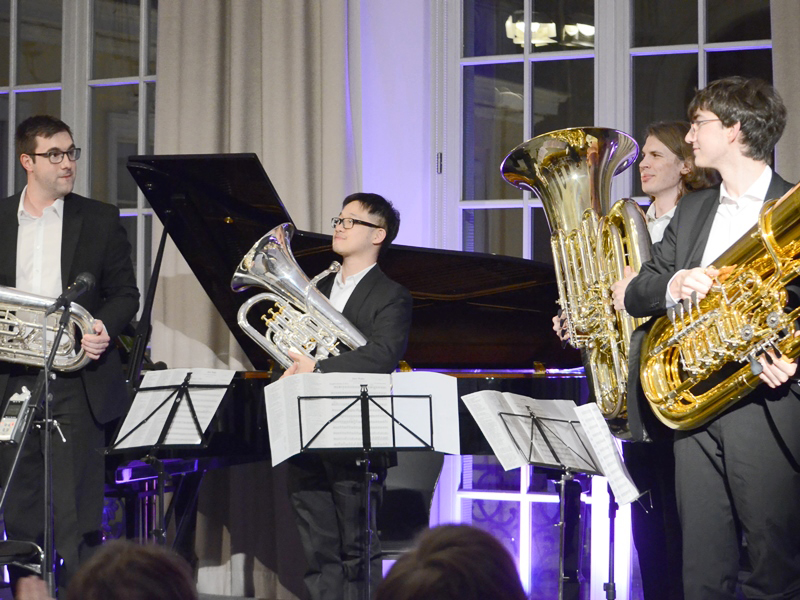 Im Klavierquintett musizierten die Studenten Marianna Storozhenko, Tatjana Dvortsova, Ksenia Guseva, Andriy Huchok sowie Anna Skladannaya und im Tuba Quartett Marius Lentes, Wen Hong Low, Andrej Altergott sowie Thorsten Winkler. Als Flötisten traten Hèctor Rodríguez und Alexander Sidoruk auf und am Klavier Prof. Sonja Gimaletdinow.