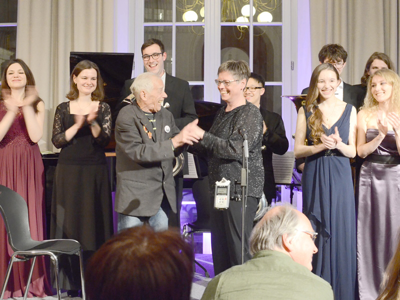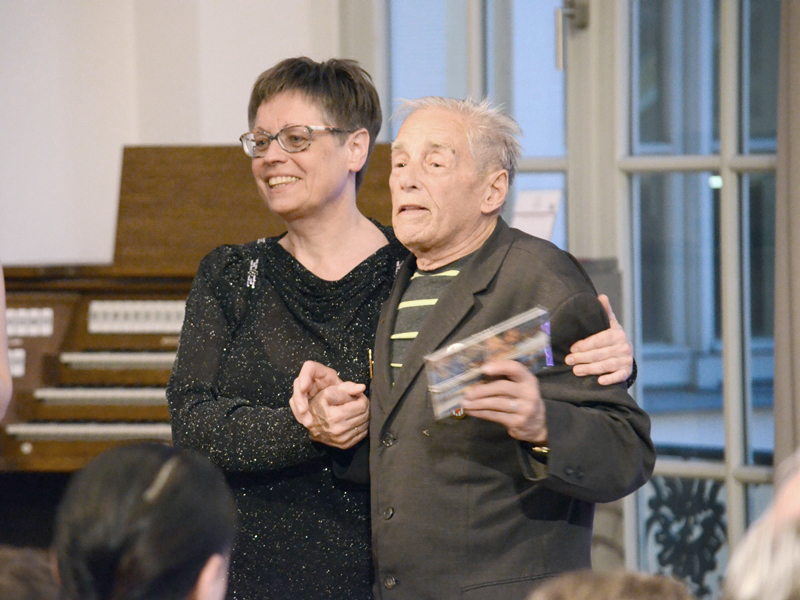 Dresden – 24. April 2018. Mit einem Sonderkonzert aus der Reihe der Dresdner Dankeskonzerte ehrten am heutigen Abend Studenten der Hochschule für Musik Carl Maria von Weber Dresden zusammen mit Prof. Sonja Gimaletdinow Alexander Danilowitsch Bytschok, der drei Wochen lang Gast des Vereins „Friedensbrücke - Kriegsopferhilfe“ war und dabei auch Dresden besuchte. Er ist einer der letzten Überlebenden und Zeitzeugen des KZ Buchenwald.