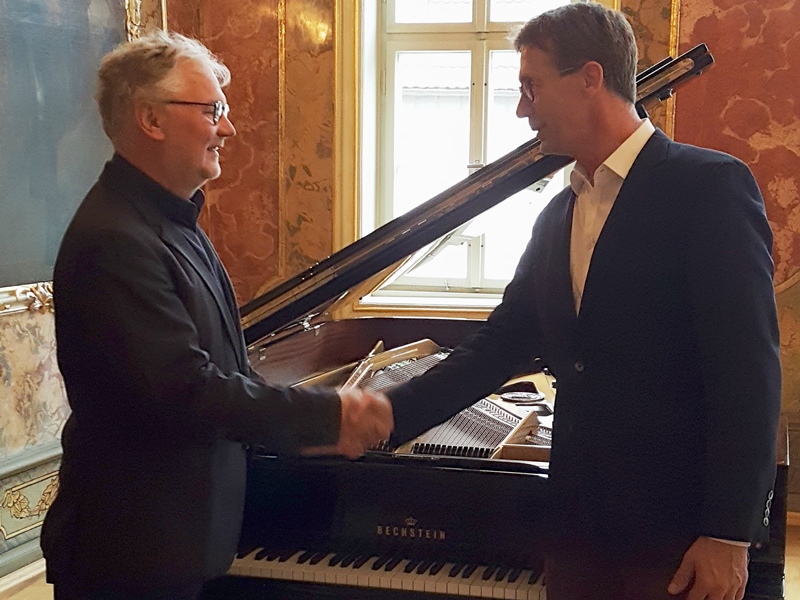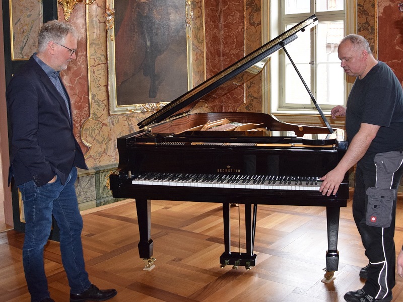 Einen Tag vor dem Einweihungskonzert überzeugte sich Bert Kirsten mit einem persönlichen Besuch im Stadtschloss Eisenach davon, dass sein Instrument den neuen Standort gut und wohlbehalten erreicht hat. Nach der Stimmung des Flügels übergab er das Instrument an Kulturamtsleiter Dr. Achim Heidenreich.