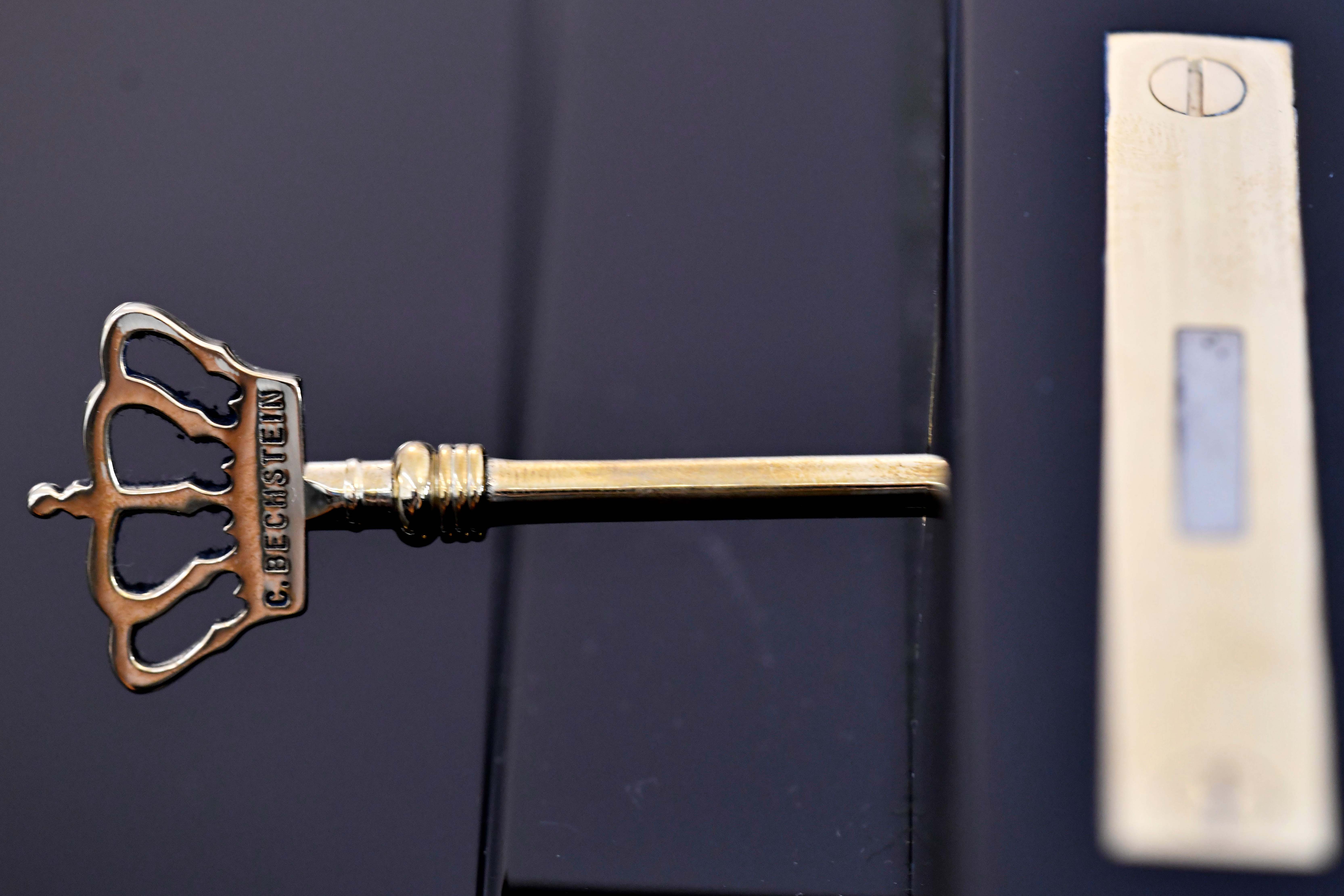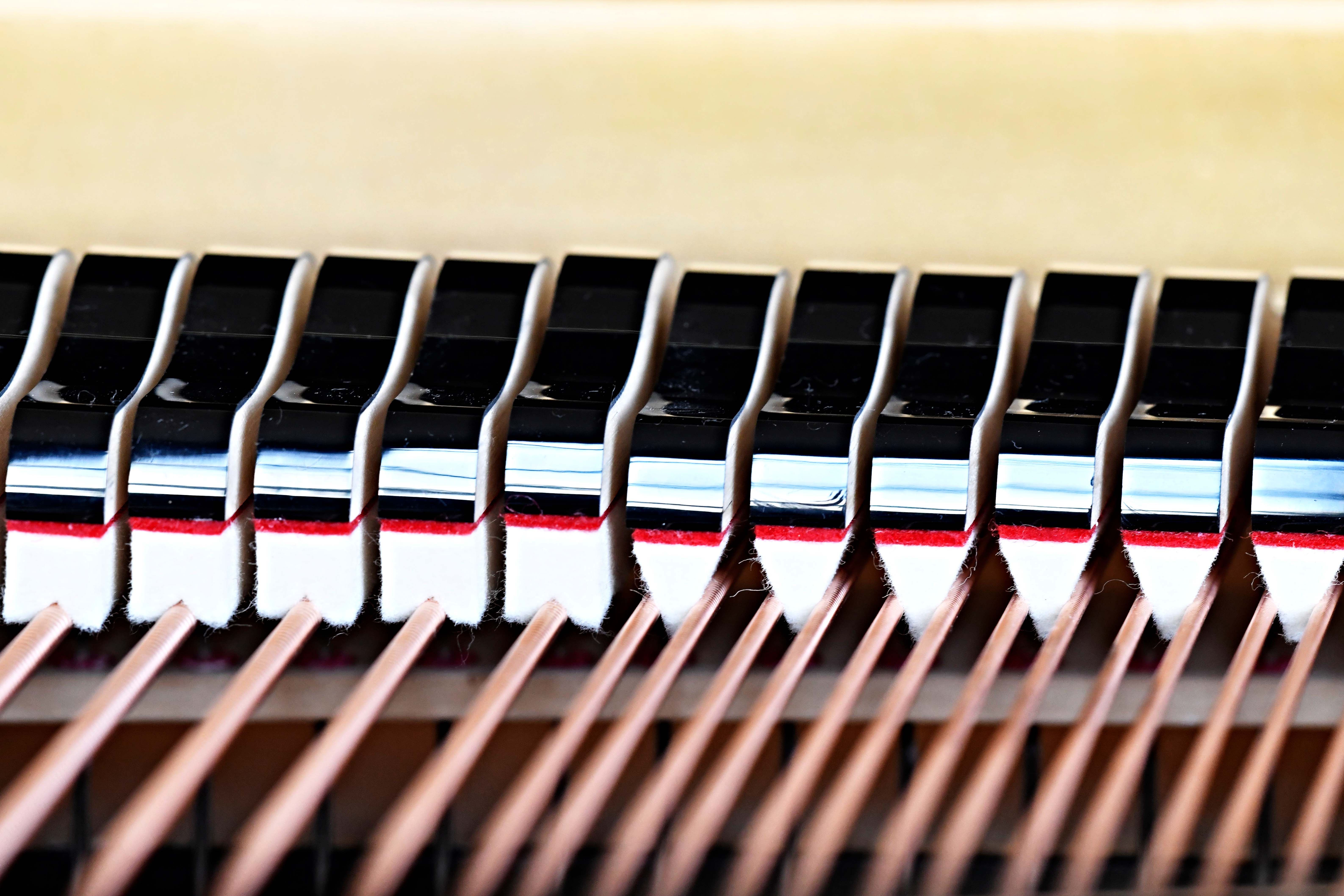 Tastenbeläge: weiße Tasten = Elfenbein, schwarze Tasten = Ebenholz