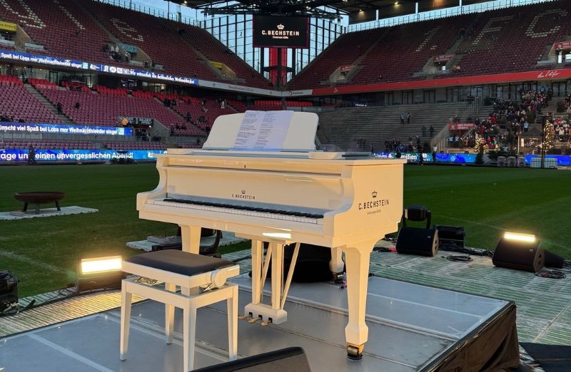 Dieser charmante "Star" hat in seinen zwei Jahren jede Menge Musikstar-Appeal aufgesaugt. Unter anderem spielten Kölner Topmusiker im Rahmen des "Loss mer Weihnachtsleeder singe" Events am Vorheiligabend im FC-Stadion auf diesem C. Bechstein A 175 und versprühte zauberhafte Klänge über die Tribünen.