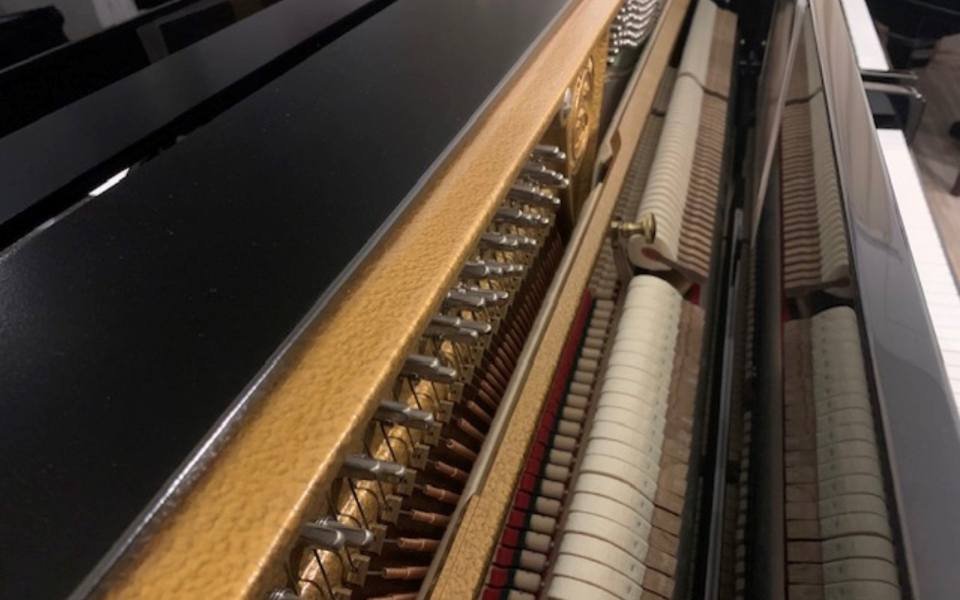 Dieses Klavier aus dem Jahr 2011, in schwarz und einer formschönen Silhouette, beeindruckt nicht nur durch sein äußeres Erscheinungsbild, sondern auch durch seinen vollen, wunderbaren Klang. Die Messingakzente machen es zu einem Blickfang in jedem Raum.