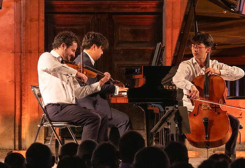 Mit Selim Mazari, dem Geister Duo und Philippe Cassard waren Pianisten in Südfrankreich zu erleben, die auf Bechstein auch schon CDs aufgenommen haben. Mazari trat diesmal gemeinsam mit dem Cellisten Aurélien Pascal auf. Denn auch die Klavierkammermusik nimmt bei diesem Festival einen hohen Stellenwert ein, wie man auch bei den Konzerten des Trio Chausson, das Trio Wanderer und des Trio Pantoum sowie beim Sirba Octett mit dem Pianisten Vincent Mussat erleben konnte. Emanuel Strosser wiederum interpretierte am Bechstein gemeinsam mit Claire Désert, Camille Baslé und Georgi Varbanov Werke für zwei Klaviere und Schlagzeug.