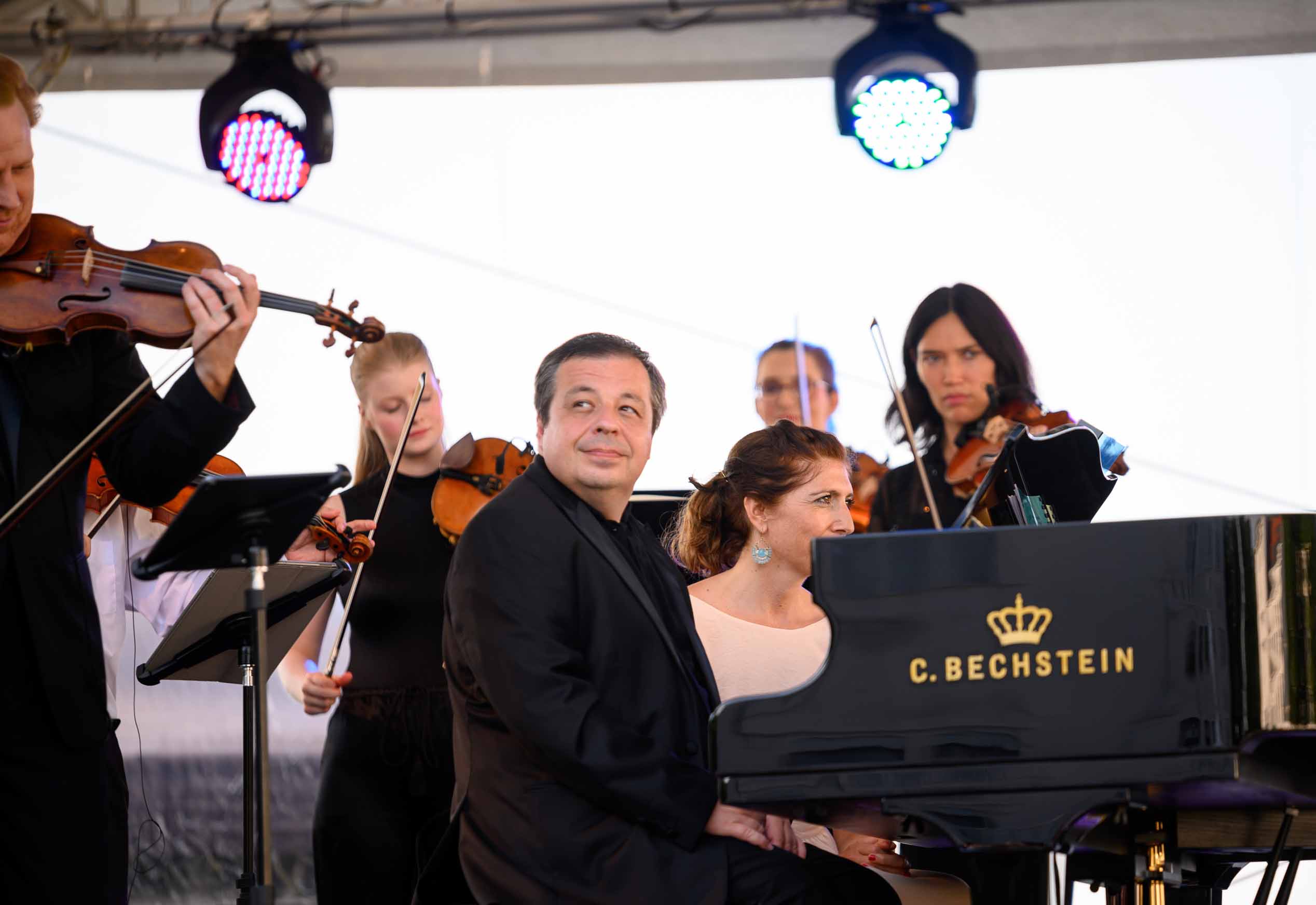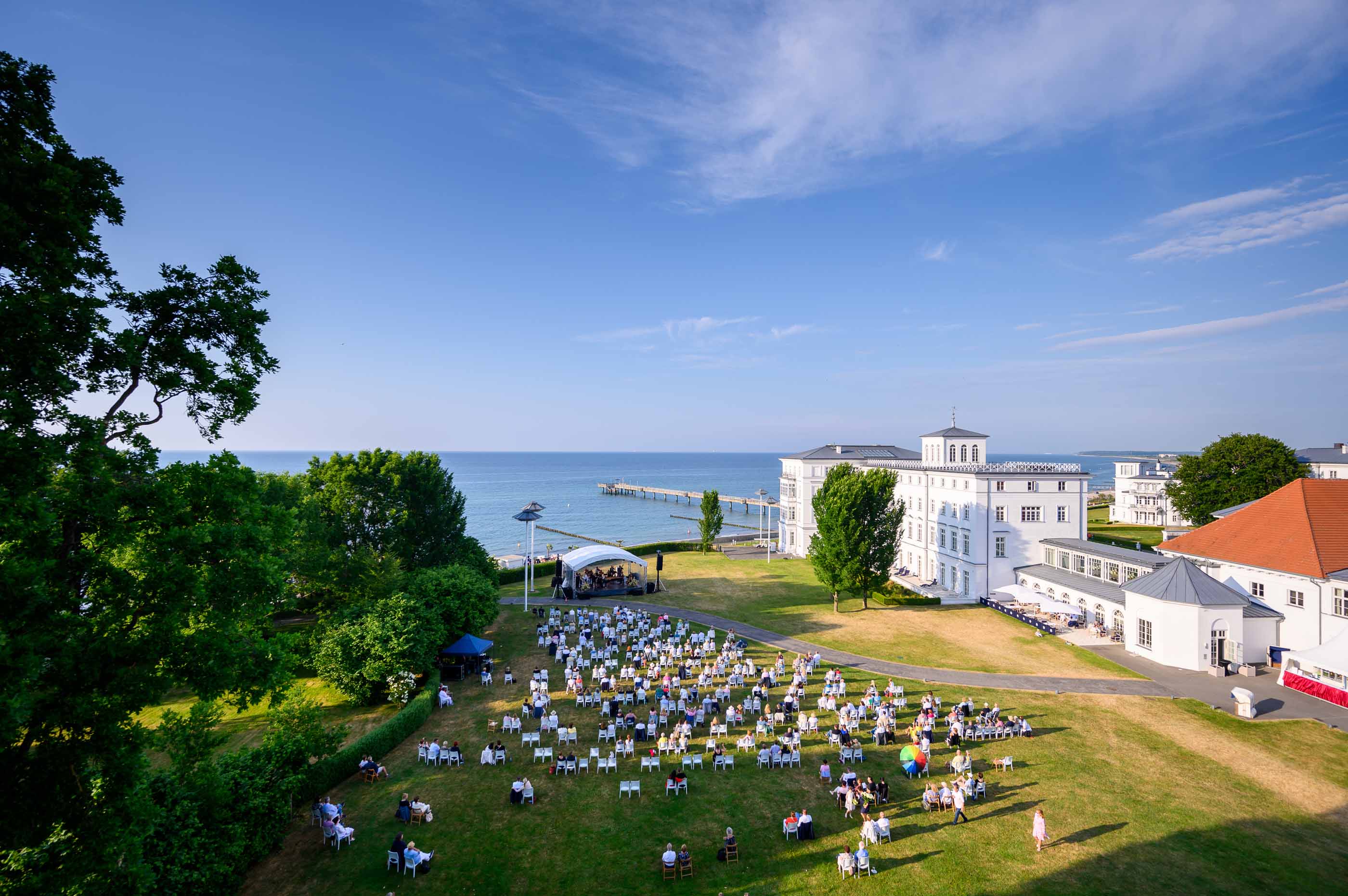Das vorhergesagte Gewitter kam nicht. Stattdessen strahlte die Sonne auf das Weiß des Grand Hotel Heiligendamm, als Violinist Daniel Hope zusammen mit dem Pianist Alexey Botvinov und dem Hope Orchestra auf der Wiese neben dem Hotel ein großartiges Open-Air-Konzert gab. Ein Abend, der bei den rund 350 Gästen in nachhaltiger Erinnerung bleiben wird.