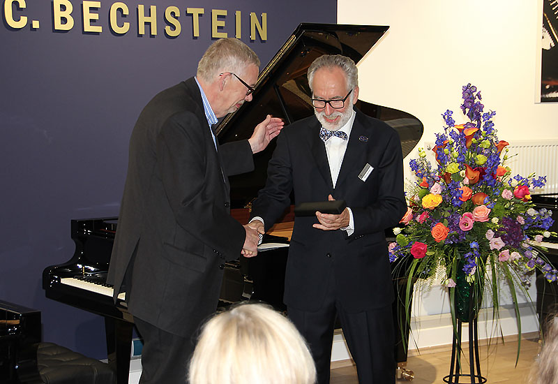 Zum Eröffnungskonzert hatten sich viele Ehrengäste von nah und fern eingefunden, beispielsweise Thomas Weitzel, Kulturreferent der Stadt Augsburg, Dieter Fischer (PIANO-FISCHER) sowie Karl Schulze, Vorstandsvorsitzender der C. Bechstein Pianofortefabrik AG, der eine silberne Stimmgabel an Gustav Weyrauther überreichte.Gustav Weyrauther führte das "pianohaus hermes&weger" seit 1976 und wird als Geschäftsführer auch den weiteren Weg des achten C. Bechstein Centrums in Deutschland noch einige Jahre begleiten und sein Team zu weiteren Erfolgen führen. Das 1920 von Jakob Hermes und Otto Weger gegründete Klavierhaus wird so in eine sichere Zukunft unter dem Dach von C. Bechstein geleitet!