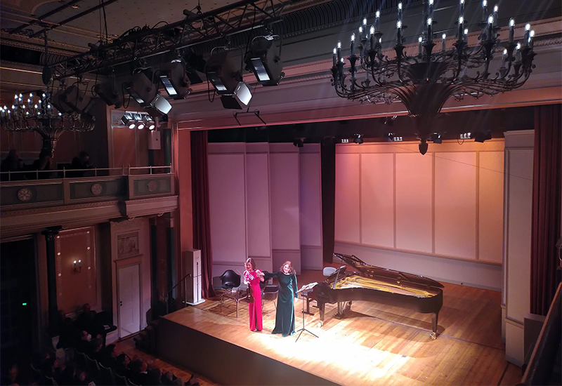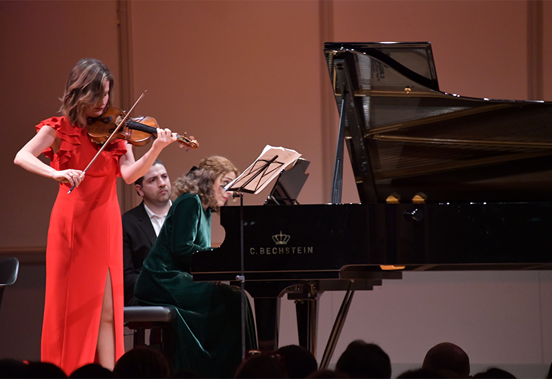 Die georgische Schriftstellerin Nino Haratischwili las Auszüge aus ihren Büchern, die von großer Erzählkunst zeugten und von leichter Ironie durchzogen waren. Die Geigerin Lisa Batiashvili und Dudana Mazmanishvili am C. Bechstein Konzertflügel des Konzerthauses spielten Werke von Revaz Laghidze (eine hochvirtuose Toccata für Klavier solo), Giya Kancheki (zwei hinreißende Miniaturen für Violine und Klavier), Alekis Machavariani (ein hinreißendes Werk für Violine solo), Bach/Busoni (die berauschende Chaconne) sowie als himmlisches Finale die letzten beiden Sätze aus César Francks A-Dur-Sonate für Violine und Klavier.