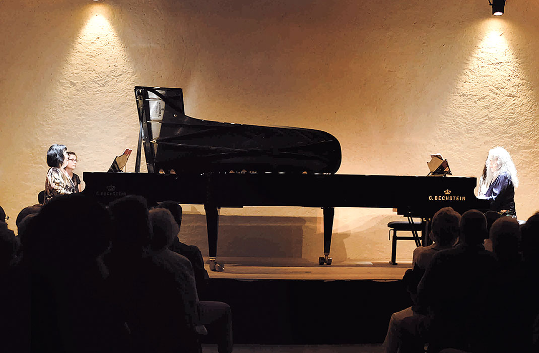 Das Klavierduo begeisterte das Publikum in Nohant mit dem Rondo D 951 von Schubert, der Sonate für zwei Klaviere KV 448 von Mozart, der Kleinen Suite von Debussy, den Paganini-Variationen für zwei Klaviere von Lutoslawski und La Valse von Ravel. Die beiden Pianistinnen spielten mit einer fesselnden Virtuosität, einer großen dynamischen Bandbreite und einem bezaubernden warmen und zugleich brillanten Ton.