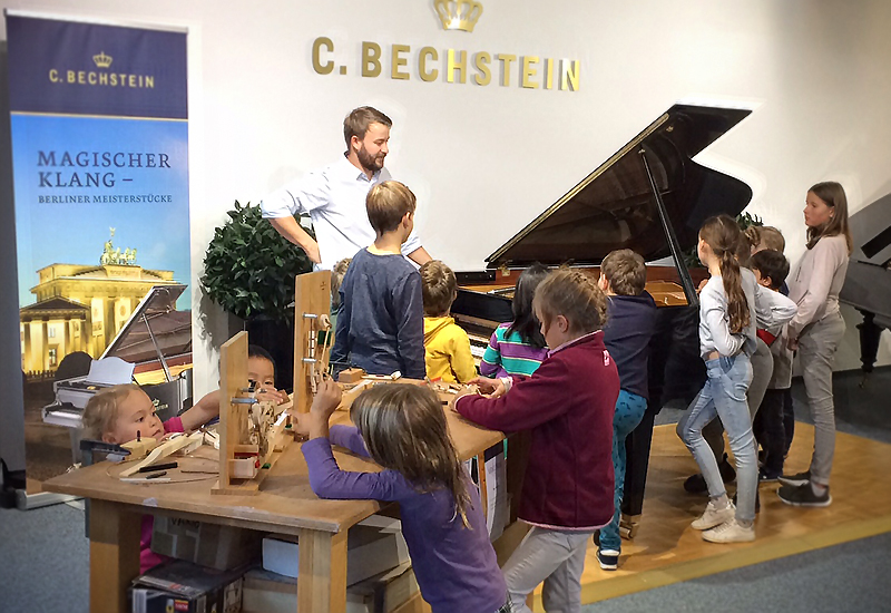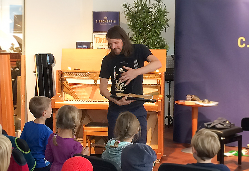 Die C. Bechstein Centren luden auch dieses Jahr wieder zu einer Reise in die Welt der Klaviere und Flügel ein. Unzählige Maus-Fans folgten diesem Aufruf und wollten im Workshop „Die kleinen Klavierbauer“ den Geheimnissen des Klavierbaus auf die Spur kommen. Zusammen mit unseren Klavierbauern konnten die Kinder Klappen öffnen, Saiten zupfen, Tasten bewegen und so herausfinden, wie und wo der Ton entsteht.