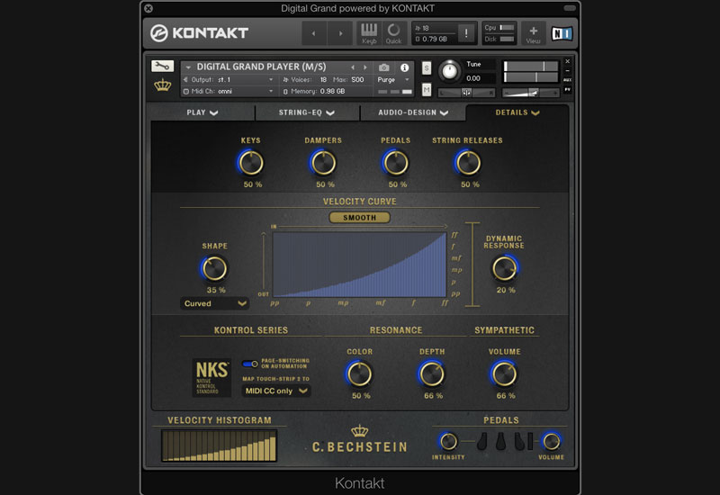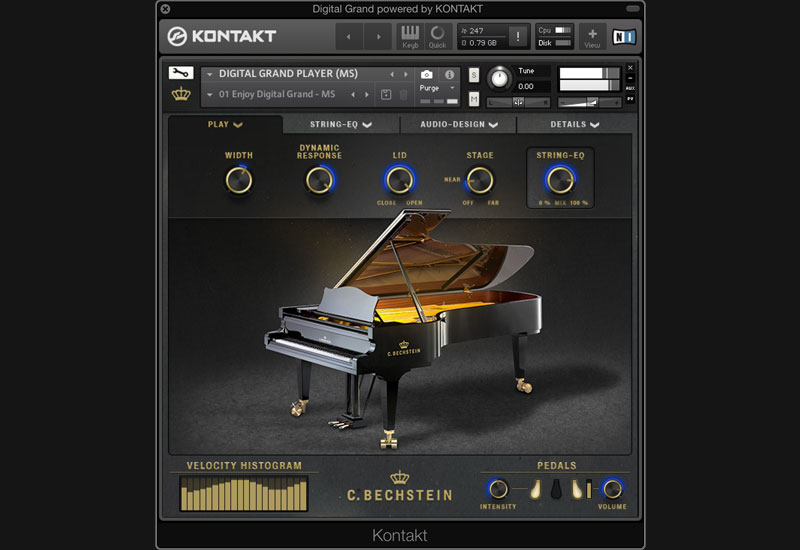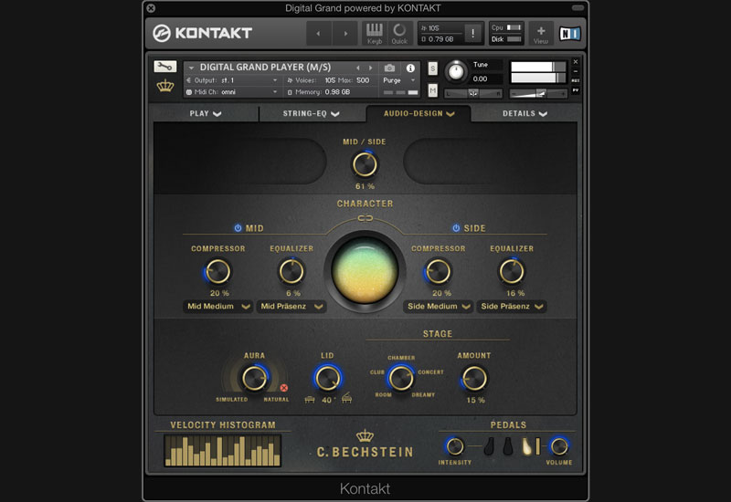 The C. Bechstein Digital Grand relies on Native Instruments’ proven KONTAKT sample player (available for macOS and Windows PC) as technological basis. Thus, the C. Bechstein Digital Grand is ready for use on all modern DAW systems. It also supports the Native KONTROL Standard (NKS) including Native Instruments’ innovative Light Guide technology for visualizing string-based sound shaping.