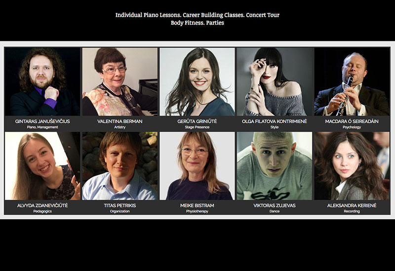 In 11 days the students will be provided with varied and intensive programme including individual piano lessons with Gintaras Januševičius, a concert tour in Samogitia (Klaipėda, Palanga, Plungė, Plateliai), lectures and discussions, focused on stage presence, management skills, public relations, style and psychology, taught by prominent artists, teachers, TV hosts, and professional managers, massage and physical training based on dance, yoga, Pilates exercise and Alexander technique, leisure activities, including the prominent Lithuanian Sea Festival 2017.