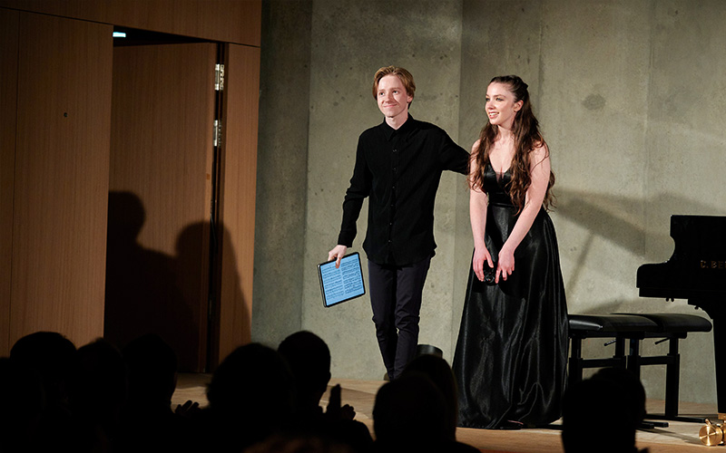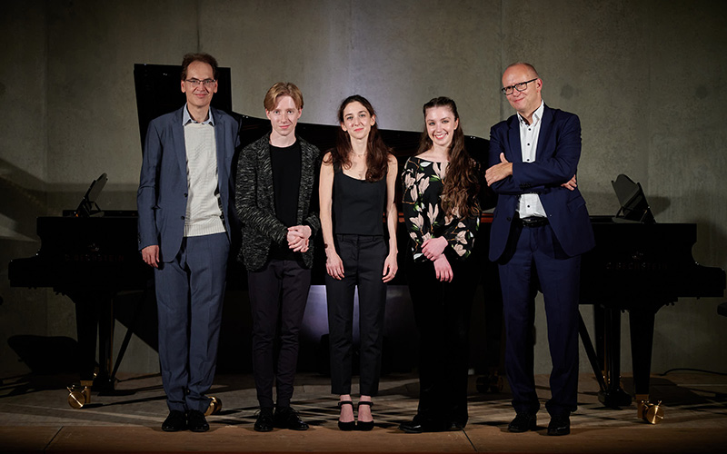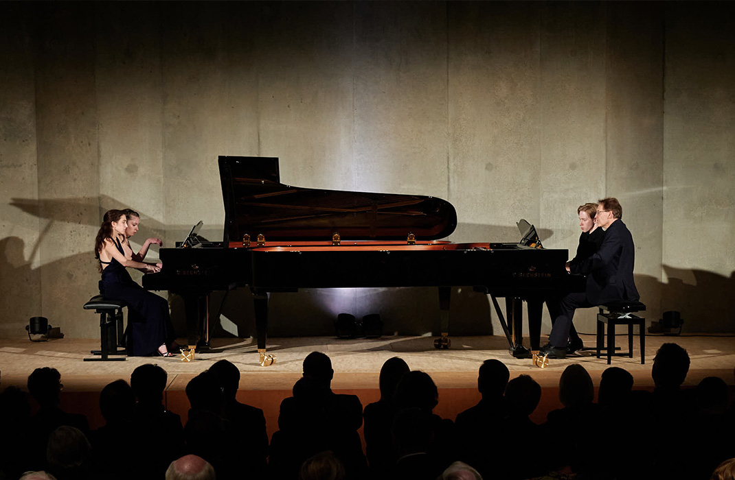 Dénes Várjon, well-known pianist and lecturer at Kronberg Academy, as well as Julia Hamos, Martina Consonni and Julius Asal, three students from the "Sir András Schiff Performance Program for Young Pianists" at Kronberg Academy, performed at the festive opening concert. They played works by Chopin, Debussy, Bartók and Brahms and proved in the furious finale, two Slavonic Dances by Dvořák, that even eight hands on two C. Bechstein concert grand pianos do not acoustically overwhelm the 150-seat hall. On the contrary, it became clear in the opening concert that the new hall has excellent, very transparent, but nevertheless warm acoustics, in which the music can unfold wonderfully in terms of structure, tone color and dynamics.