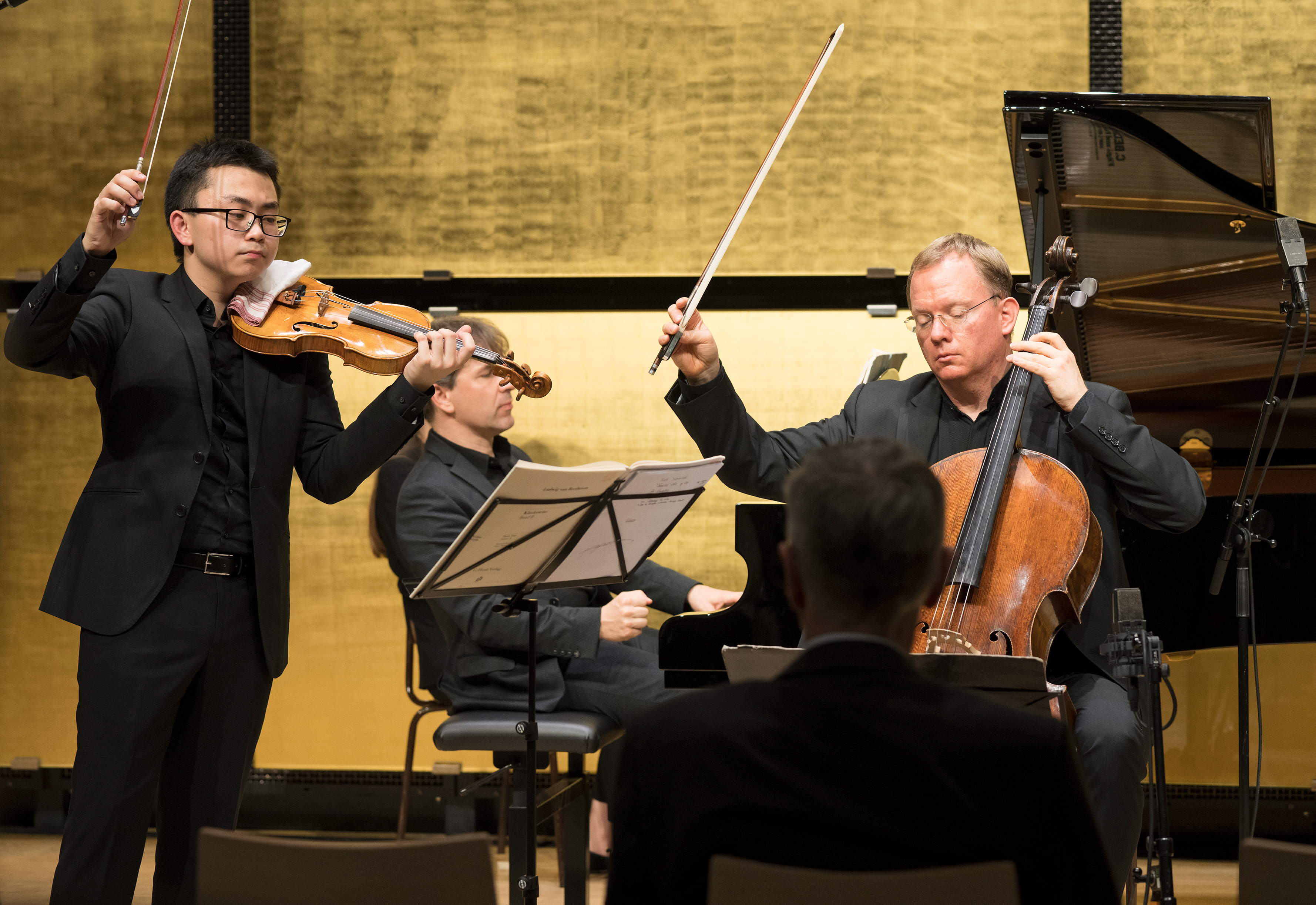 The Altenberg Trio Wien is one of Europe's most renowned chamber music ensembles and has a regular concert series in the Vienna Musikverein. Due to the Corona crisis and Austria's early response, its latest concerts in the 2019/20 concert season were cancelled, but the ensemble also was one of the first opportunities provided by the Musikverein to play an official concert in June. There were elaborated restrictions in place to ensure the safety of all participants, i.e. the performers, Musikverein staff and the audience. On June 25, 2020, the Altenberg Trio Wien finally came back to the concert stage with a chamber music recital that also included a world premiere performance by Austrian composer Kurt Schwertsik. The composer was present during the preparation for the concert and was delighted to finally hear his work performed by such an eminent ensemble.