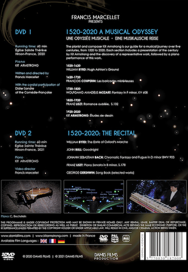 A film that the French producer and director Francis Marcellet shot in 2020 bears the title "1520-2020 - A Musical Odyssey" and is now available for sale on his website in the form of a double DVD. The film stars pianist Kit Armstrong, who says, "My homeland is music - it's a land without borders, and with diverse landscapes."