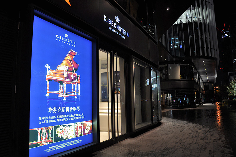 Situated right on the doorstep of the embassy quarter and the China World Trade Center, the new C. Bechstein Center is nestled among numerous luxury stores, including Louis Vuitton, Hermes, Goyard and Leica. It is based in the Guanghualu SOHO² building designed by the German architecture firm GMP International and showcases a vast selection of upright and grand pianos from the C. Bechstein, Bechstein, W.Hoffmann and Zimmermann ranges.
