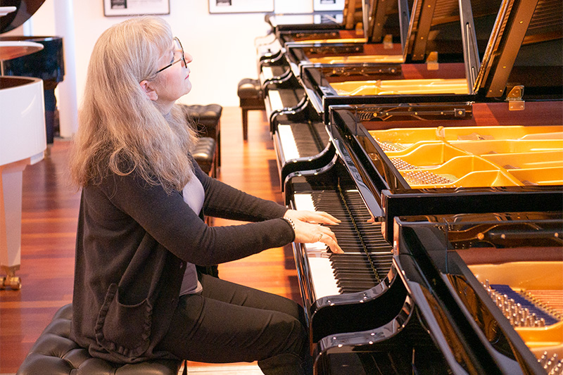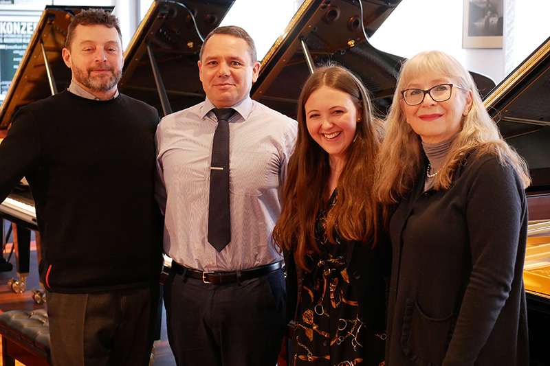 Prof. Dina Parakhina from the Royal College of Music in London chose two new C. Bechstein C 234 for the renowned music instutution. She was accompanied by Chris Moulton (Head of Keyboard Technical Services, RCM) and Emma Diss (Faculty, RCM).