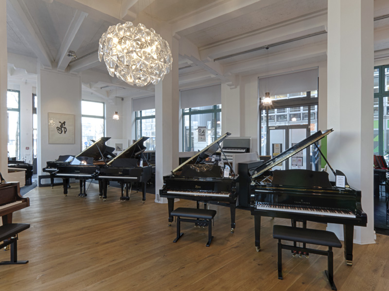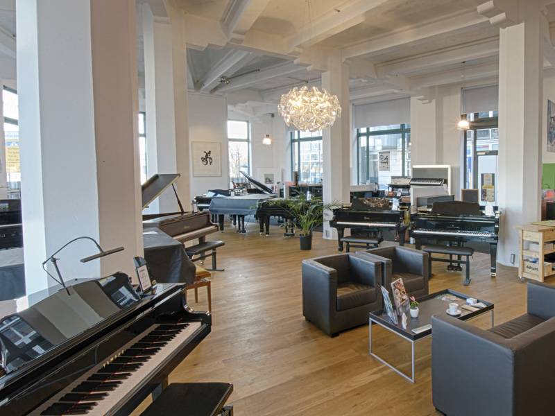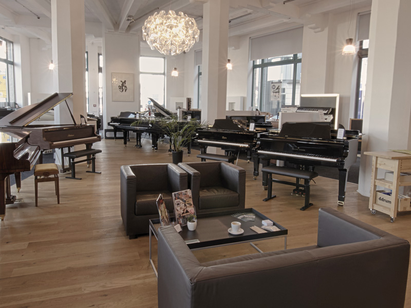 Leipzig Pianos has one of the most beautiful showrooms in the former East Germany. More than twenty grands and forty uprights are on display on premises that cover as much as six hundred square meters. Located in the Industry Palace, a building erected in the early 20th century near both the railway station and the city center, Leipzig Pianos’ showroom is enchanting with its imposing columns, good natural lighting and excellent acoustics. This synthesis of stupendous architecture with pianos that stand out for their superior craftsmanship and musical quality is unique in Leipzig and the surrounding region.
