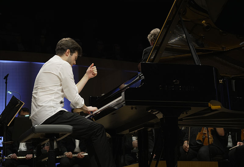 The young pianist made his orchestral debut with the Stuttgart Radio Symphony Orchestra at the age of eight. He was a guest at the Festival "Moscow meets Friends" 2013, Festival of Bad Kissingen (Kissinger Sommer), Schwetzingen Festival, Gstaad Menuhin Festival, Mecklenburg-Vorpommern Festival, Schleswig-Holstein-Festival, Mosel Festival, Lucerne Festival, Interlaken Classics Bern, SOLsberg Hochrhein Musikfestival and Classical Bridge Festival NY. Versatile as a chamber musician he has played with musicians such as Daniel Müller-Schott, Julia Fischer, Olli Mustonen and Sebastian Manz. He is also founder of the piano festival Cannstatter Klavierfrühling in Stuttgart, which took place for the first time in 2024 and presents mainly international pianists and composers of the new generation.